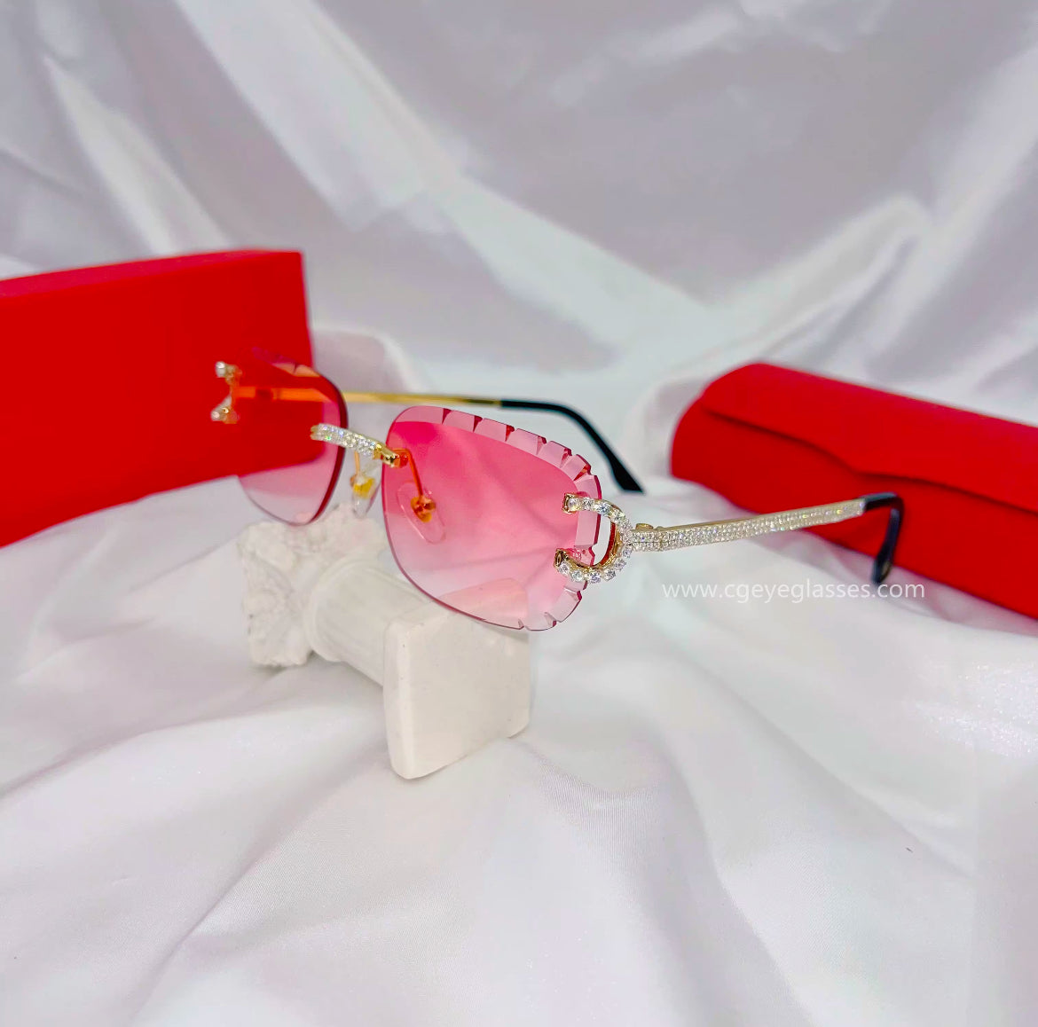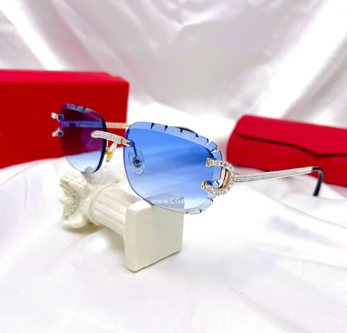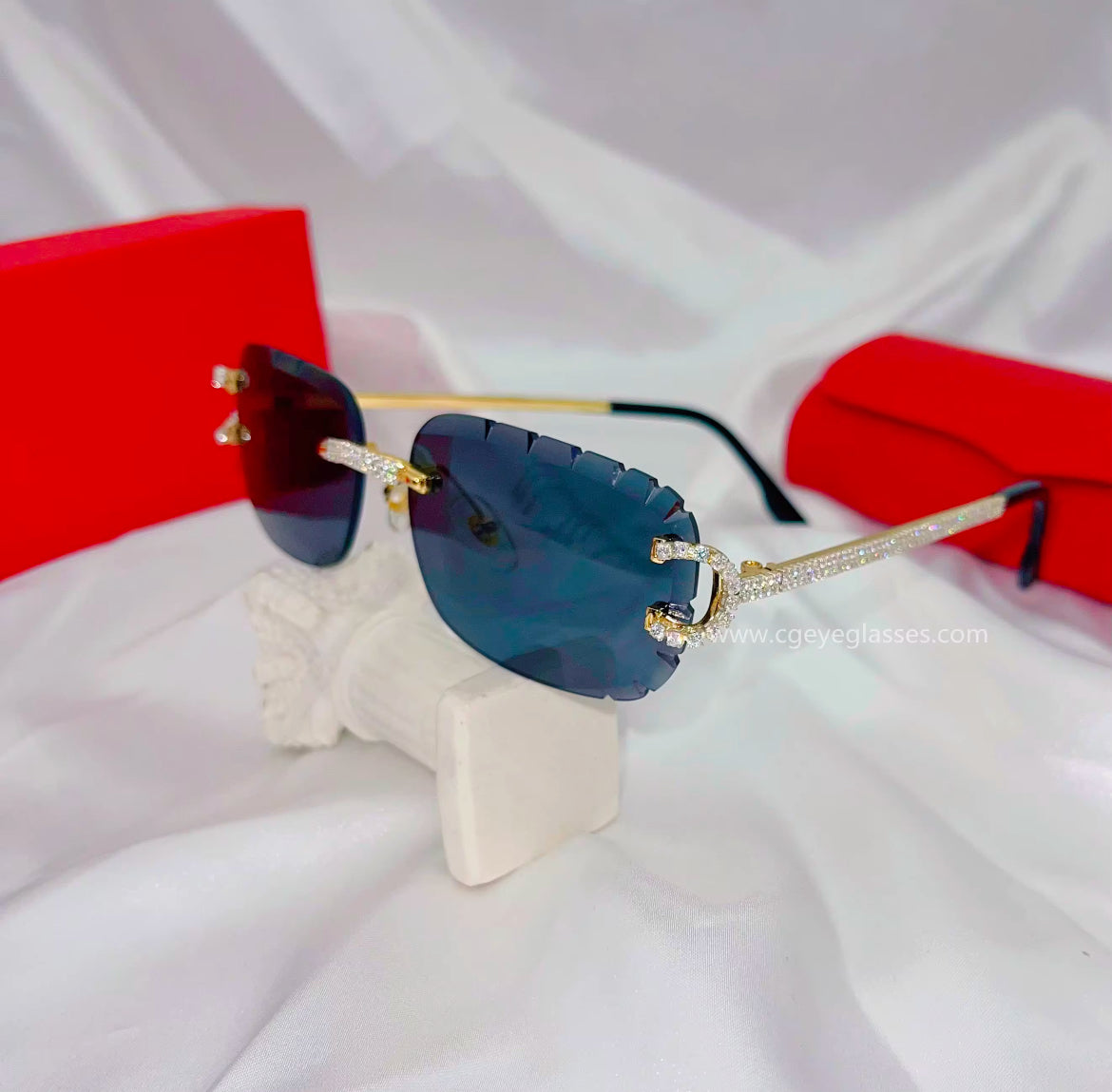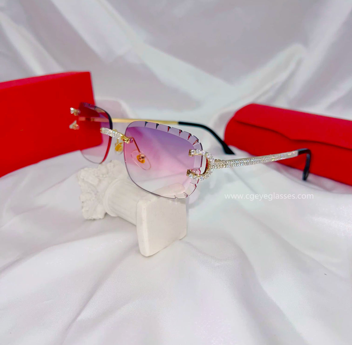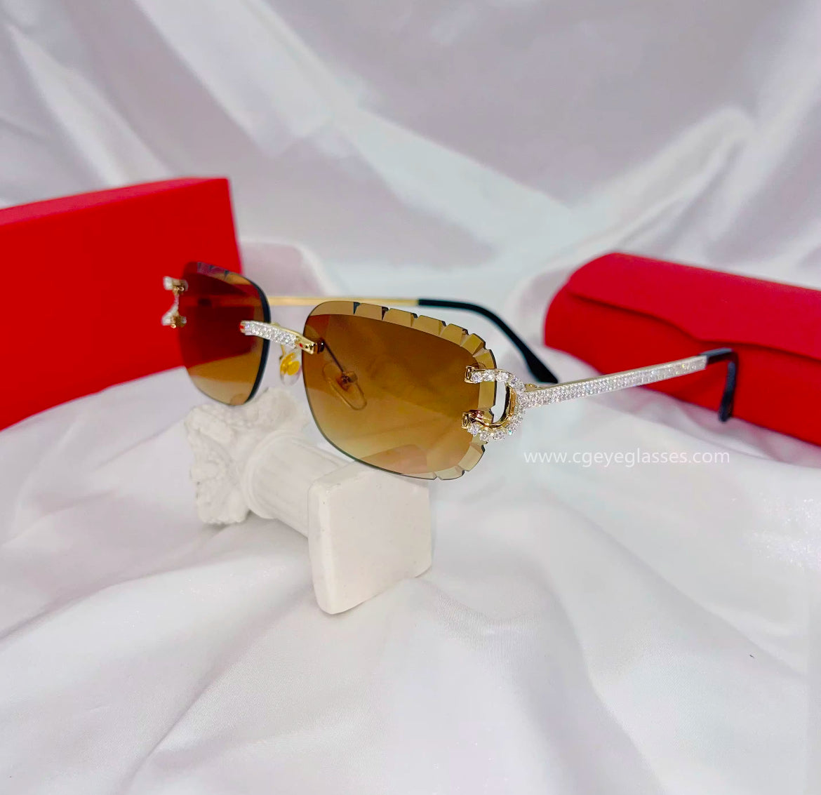 These 2025 New Cut Lens Sunglasses feature a modern, square rimless design with high-quality, unisex appeal. The gradient lenses are complemented by a gold frame adorned with sparkling rhinestones.